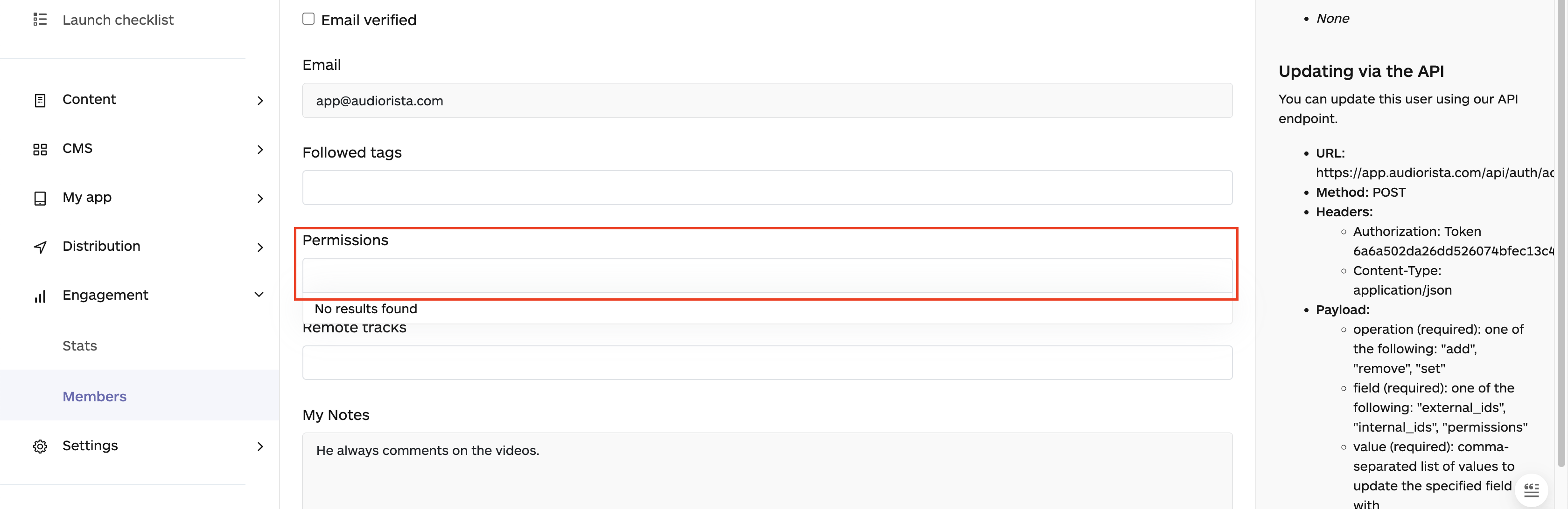 The Members section in the Audiorista Dashboard is your central hub for managing your app’s audience. From searching and editing profiles to assigning permissions and inviting new users, everything you need is in one place.
